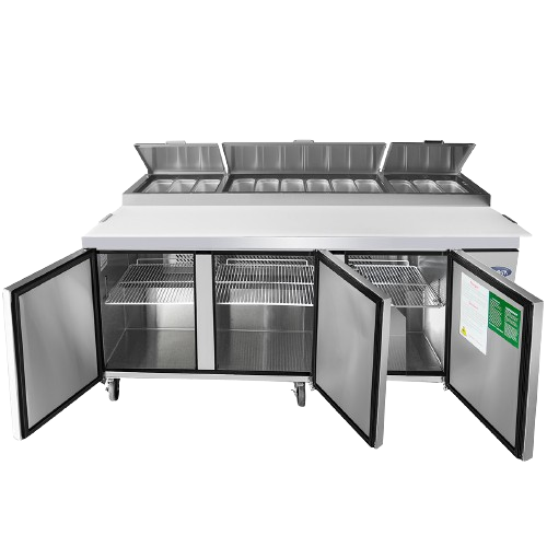 This refrigerated prep table features a variable capacity heavy duty compressor and uses R290 environmentally friendly refrigerant. The variable capacity compressor is quieter than a standard compressor and uses up to 40% less energy.